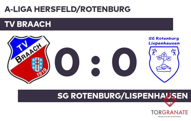 Die erste Halbzeit endete ohne ein zählbares Ereignis für beide Mannschaften. Mit einem Wechsel – Jonas Grunwald kam für Paul Kramer – startete Rotenburg/Lispenh. in Durchgang zwei. Beim TV Braach kam zu Beginn der zweiten Hälfte Noel Knöckel für Paul Eliseev in die Partie. Schließlich pfiff Jens Dick (Bebra) das Spiel ab und damit waren nach torloser erster Halbzeit auch im zweiten Teil keine Treffer zu bewundern. Die Teams trennten sich am Ende mit einer Nullnummer voneinander.