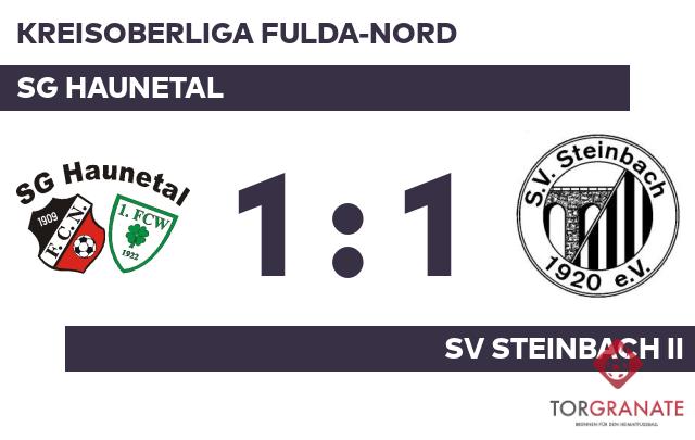 Die erste Halbzeit endete ohne ein zählbares Ereignis für beide Mannschaften. Parwes Adel schoss in der 60. Minute vom Elfmeterpunkt das erste Tor des Spiels für die SG Haunetal. Aaron Eigenbrod, der in der 90. Minute erfolgreich war, sorgte mit seinem Treffer kurz vor dem Spielende für den Ausgleich. Am Ende trennten sich die SG Haunetal und der SV Steinbach II schiedlich-friedlich.