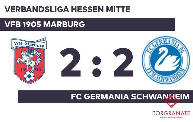 Auf die vermeintliche Siegerstraße brachte Ngolo Ouattara sein Team in der 26. Minute. Das 1:1 der Germania Schwanheim bejubelte Marko Colovejic (34.). Der VfB Marburg gelangte durch ein Selbsttor des FC Germania Schwanheim zur 2:1-Führung (36.). Die Antwort ließ nicht lange auf sich warten. Wenige Augenblicke später besorgte Noah Brämer den Ausgleich (40.). Zur Halbzeit war die Partie noch vollkommen offen. Remis lautete das Zwischenresultat. Als Schiedsrichter Niklas Rüddenklau (Liebenau) das Spiel beendete, blieb der folgende Eindruck: Während der erste Durchgang mit Toren nicht geizte, wurde es nach Wiederanpfiff ruhiger. Am Ende blieb es bei den Treffern aus der ersten Halbzeit.