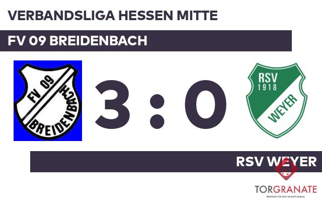 Der FV 09 Breidenbach ist jetzt mit 18 Zählern punktgleich mit dem RSV Weyer und steht aufgrund des besseren Torverhältnisses von 30:32 auf dem siebten Platz. Beide Teams fuhren in dieser Saison bisher fünf Siege ein. Während der FV 09 Breidenbach mit 18 Punkten in der Tabelle gut platziert ist, verliert der RSV Weyer (18 Zähler) nach vier Spielen ohne Sieg mächtig an Boden.