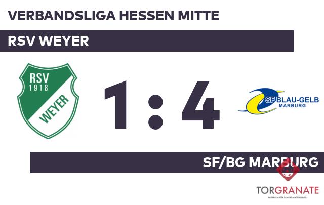 Mit dem souveränen Sieg gegen den RSV Weyer festigte das SF/BG Marburg die vierte Tabellenposition. An der Abwehr des SF/BG Marburg ist so gut wie kein Vorbeikommen. Erst zehn Gegentreffer musste das SF/BG Marburg bislang hinnehmen. Das SF/BG Marburg knüpft mit dem Sieg an die guten Auftritte in der bisherigen Saison an. Insgesamt sammelte das SF/BG Marburg sechs Siege, ein Unentschieden und kassierte nur drei Niederlagen. Das SF/BG Marburg ist seit drei Spielen unbezwungen.