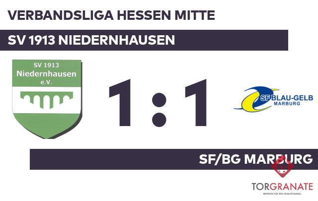 Beide Mannschaften starteten vorsichtig in das Spiel. Zu Torchancen gelangte in der Anfangsphase keine von beiden. Ephraim Uworuya musste nach nur 16 Minuten vom Platz, für ihn spielte Thomas Brewer weiter. Noch bevor es in die Halbzeit ging, war Milano Michel mit dem 1:0 für das SF/BG Marburg zur Stelle (40.). Die Sportfreunde Blau-Gelb nahmen die knappe Führung mit in die Kabine. In Durchgang zwei lief Dominik Ortega Tapia anstelle von Davide Frusteri für den SV Niedernhausen auf. Für den Gleichstand, der kurz vor dem Ende zustande kam, zeichnete Richard Ofosu mit seinem Treffer aus der 86. Minute verantwortlich. Letzten Endes wurde in der Begegnung des SV 1913 Niedernhausen mit dem SF/BG Marburg kein Sieger gefunden.