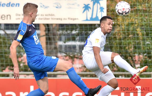 Manuel Konate-Lueken (rechts, hier im Trikot von Bayern Alzenau) blickt auf eine bislang bewegte Laufbahn als Fußballer zurück. Foto: Charlie Rolff