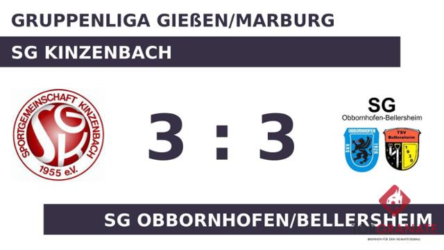 Auf die vermeintliche Siegerstraße brachte Tommy Ried sein Team in der achten Minute. Tim Richter schoss für das Obbornh./Bellersh. in der 36. Minute das erste Tor. Tim Hufnagel nutzte die Chance für den Gast und beförderte in der 39. Minute das Leder zum 2:1 ins Netz. Die SG Obbornhofen/Bellersheim hatte zur Pause eine knappe Führung auf dem Zettel stehen. In der 59. Minute war Ried mit dem Ausgleich zum 2:2 zur Stelle. Damit schoss er bereits seinen zweiten Treffer! Hendrik Paul witterte seine Chance und schoss den Ball zum 3:2 für das Obbornh./Bellersh. ein (63.). Die SG Obbornhofen/Bellersheim musste den Treffer von Andre Jörg zum 3:3 hinnehmen (72.). Am Schluss hatte im Duell der beiden Mannschaften keine die Oberhand gewonnen und so trennten sich die SG Kinzenbach und das Obbornh./Bellersh. schließlich mit einem Remis.