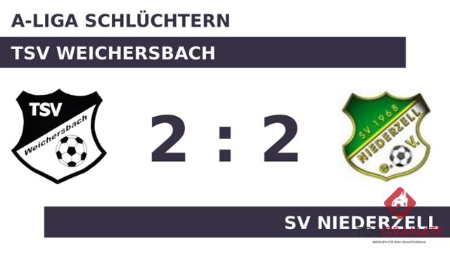 Auf die vermeintliche Siegerstraße brachte Maximilian Glock sein Team in der 18. Minute. Der SV Niederzell glich bis zum Halbzeitpfiff nicht mehr aus. Schließlich schickte Schiedsrichter Marcus Köpke (Ortenberg) beide Teams mit der knappen Führung für die TSV Weichersbach in die Kabinen. In der 77. Minute verwandelte Niklas Moritz einen Elfmeter zum 1:1 für den SV Niederzell. Sascha Gies machte in der 79. Minute das 2:1 der TSV Weichersbach perfekt. Johannes Egner sicherte seiner Mannschaft kurz vor dem Abpfiff den Ausgleich, als er in der 90. Minute ins Schwarze traf. Am Ende stand ein Teilerfolg für beide Mannschaften. Die TSV Weichersbach und der SV Niederzell spielten unentschieden.