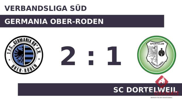 Marco Christophori-Como brachte den SC Dortelweil in der 16. Minute ins Hintertreffen. Nach nur 28 Minuten verließ Oezguen Tatar von Germania Ober-Roden das Feld, Jashari Drilon kam in die Partie. Mit einem Tor Vorsprung für den 1. FC Germania 08 ging es für die beiden Teams in die Halbzeitpause. Beim SC Dortelweil gab es ein neues Gesicht auf dem Platz: Patrick Eiwanger wurde für Darren Lee Hare eingewechselt. Germania Ober-Roden kam mit einer geänderten Formation aus der Kabine zurück: Okan Kilic war für Damien Letellier zur Stelle. Marvin Strenger traf zum 1:1 zugunsten des SC Dortelweil (58.). Sascha Ries, der von der Bank für Jonas Dapp kam, sollte für neue Impulse bei Germania Ober-Roden sorgen (70.). Dank eines Treffers von Ries in der Schlussphase (88.) gelang es den Ober-Rodener, die Führung einzufahren. Schließlich strich Germania Ober-Roden die Optimalausbeute gegen den SC Dortelweil ein.