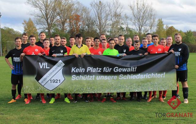 Der VfL Heimboldshausen wollte damit zusammen mit seinen Gästen ein klares Statement gegen Gewalt im Fußball setzen und reagierte so auf die jüngsten Vorfälle im hessischen Münster. Hier wurde ein Schiedsrichter von einem Spieler niedergeschlagen. Der Vorschlag zu dieser Aktion kam aus den Reihen der Heimboldshäuser Fußballmannschaft und wurde durch den Vorstand des VfL unterstützt. "Emotionen und Leidenschaft sind ein wichtiger Bestandteil unseres Sportes, nicht aber solche Gewaltexzesse.“ sagt VfL-Vorstand Matthias Maikranz. Um sich diesen Vorsatz immer wieder deutlich vor Augen zu führen, soll das Banner einen festen Platz auf der Werra-Insel erhalten. Der VfL Heimboldshausen bedankt sich in diesem Zusammenhang bei der Tischlerei Lotz aus Heimboldshausen, die die Aktion durch die Übernahme der Banner-Kosten unterstützt hat.