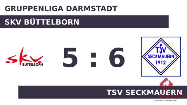 Kurz nach Spielbeginn schockte Issam Laghouali den TSV Seckmauern und traf für den SKV Büttelborn im Doppelpack (4./5.). Der SKV Büttelborn machte weiter Druck und erhöhte den Spielstand im Eilschritt durch einen Treffer von Davide Lombardi (9.). Dario Hener versenkte den Ball in der 15. Minute im Netz der Gastgeber. Es folgte der Anschlusstreffer für den TSV Seckmauern – bereits der zweite für Dario Hener. Nun stand es nur noch 2:3 (23.). Zum psychologisch wichtigen Zeitpunkt kurz vor der Halbzeit (43.) traf Leon Raitz zum Ausgleich für den Gast. Eine Aussage darüber, wer am Ende die Nase vorn haben würde, war nach dem Abpfiff der ersten Halbzeit noch nicht zu treffen. Es ging mit einem Gleichstand in die Kabinen. Joel Prostmeyer ließ sich in der 56. Minute nicht zweimal bitten und verwertete zum 4:3 für den TSV Seckmauern. Der Tabellenletzte baute den Vorsprung mit der Hilfe des Gegners weiter aus: 5:3 für den TSV Seckmauern durch ein Eigentor des SKV Büttelborn in der 64. Minute. Wenig später kamen Marvin Austen und Sebastian Krieg per Doppelwechsel für Chidera Ashibuogwu und Lombardi auf Seiten des SKV Büttelborn ins Match (60.). Durch einen Elfmeter von Krieg kam der SKV Büttelborn noch einmal ran (71.). Per Elfmeter erhöhte Raitz in der 73. Minute seine Torausbeute an diesem Tag auf zwei Treffer – 6:4 für den TSV Seckmauern. Mit dem zweiten Treffer von Krieg rückte der SKV Büttelborn wieder ein wenig an den TSV Seckmauern heran (83.). Am Ende schlug der TSV Seckmauern den SKV Büttelborn auswärts.