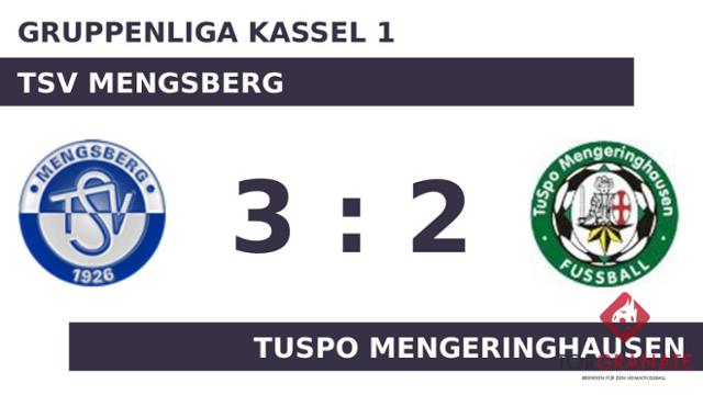 Mengeringhausen legte los wie die Feuerwehr und ließ durch einen Doppelschlag von Kevin Jaeger aufhorchen (8./12.). Die Hintermannschaft des TSV Mengsberg ließ bis zur Pause kein weiteres Tor zu und es ging bei unverändertem Stand in die Kabinen. Die Einwechslung von Fabian Mader, welcher für Janus Weber kam, sollte die Mengsberger wachrütteln (54.). Das 1:2 der Heimmannschaft stellte Andre England sicher (55.). In der 71. Minute gelang dem TSV Mengsberg, was zur Pause in weiter Ferne war: der Ausgleichstreffer durch Janos Moll. Der TuSpo Mengeringhausen kam nicht mehr ins Spiel zurück, Mader brachte den TSV Mengsberg sogar in Führung (74.). Mit dem Abpfiff des Schiedsrichters Dominik Simon (Antrifttal) hatte Mengeringhausen das Polster der ersten Hälfte verspielt, sodass es letzten Endes nicht einmal für ein Unentschieden reichte.
