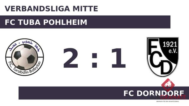 Der Unparteiische setzte mit dem Halbzeitpfiff dem torlosen Treiben auf dem Feld vorläufig ein Ende. In der Pause wechselte der FC TuBa den nominellen Stürmer Laurin De Bona für Disimua Brandon Kanzi ein. Leonid Akulinin brachte sein Team in der 58. Minute nach vorn. Das 1:1 des FC Dorndorf bejubelte Florian Kröner (70.). De Bona witterte seine Chance und schoss den Ball zum 2:1 für den FC TuBa Pohlheim ein (72.). Als der Unparteiische Tobias Lecke (Kassel) die Partie abpfiff, reklamierte der FC TuBa schließlich einen 2:1-Heimsieg für sich.
