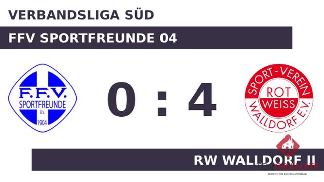 Die Gäste gingen durch Farid Affo in der elften Minute in Führung. Bereits in der zwölften Minute erhöhte Jannis Hartmann den Vorsprung des RW Walldorf II. Die Hintermannschaft der FFV Sportfreunde 04 ließ bis zur Pause kein weiteres Tor zu und es ging bei unverändertem Stand in die Kabinen. Mit dem 3:0 von Kays Iraqi für das RW Walldorf II war das Spiel eigentlich schon entschieden (56.). Daniel Akmadzic besorgte in der Schlussphase schließlich den vierten Treffer für das RW Walldorf II (85.). Letztlich fuhr das RW Walldorf II einen souveränen Erfolg ein, dessen Grundstein im ersten Spielabschnitt gelegt worden war.