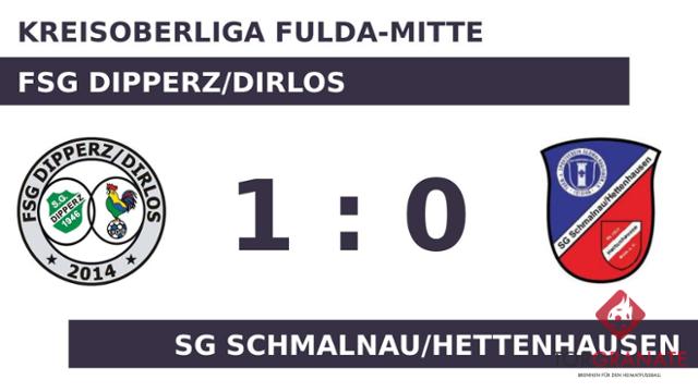 In der 17. Minute fiel der Führungstreffer für die FSG Dipperz/Dirlos mit einem Eigentor. Den Unterschied zwischen den beiden Mannschaften machte bis zur Pause lediglich ein Treffer aus, den die FSG für sich beanspruchte. Die SG Schmalnau/Hettenhausen kehrte stark verändert aus der Kabine zurück. Statt Tobias Bub, Gyorgi Zarevski und Alexander Baier standen jetzt Cornelius Schleicher, David Bolz und Marius Bub auf dem Platz. Schlussendlich pfiff Schiedsrichter Markus Schel (Petersberg) das Spiel ab, ohne dass Tore im zweiten Durchgang zu bejubeln waren. Die FSG Dipperz/Dirlos brachte am Ende einen knappen Dreier unter Dach und Fach.