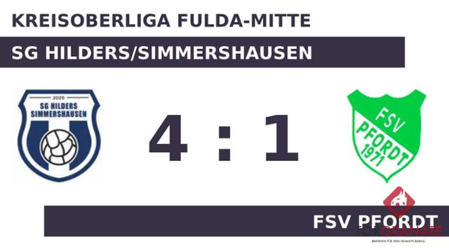 Ein Doppelpack brachte die SG Hilders/Simmershausen in eine komfortable Position: Johannes Schafsteck war gleich zweimal zur Stelle (2./18.). Das letzte Tor der turbulenten Startphase markierte Leon Beck in der 30. Minute. Die SG Hi/Si dominierte den Gegner zur Pause nach Belieben und ging mit einer deutlichen Führung in die Kabine. In der 46. Minute brachte Simon Schlosser das Netz für den FSV Pfordt zum Zappeln. Jonathan Will brachte die SG Hilders/Simmershausen in ruhiges Fahrwasser, indem er das 4:1 erzielte (63.). Letztlich fuhr die SG einen souveränen Erfolg ein, dessen Grundstein im ersten Spielabschnitt gelegt worden war.