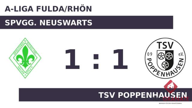 Auf die vermeintliche Siegerstraße brachte Patrick Fischer sein Team in der 25. Minute. Bis zur Pause fiel kein weiteres Tor, sodass Spvgg. Neuswarts mit einer Führung in die Kabine ging. Maurice Gensler war zur Stelle und markierte das 1:1 des TSV Poppenhausen (49.). Am Ende stand ein Teilerfolg für beide Mannschaften. Spvgg. Neuswarts und der TSV Poppenhausen spielten unentschieden.