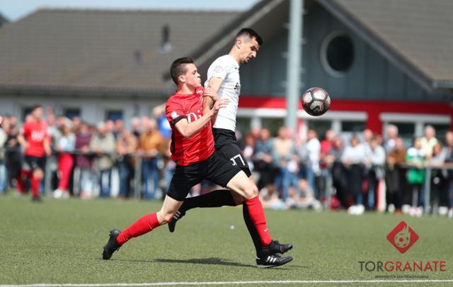 Auf der Gegenseite hatte Neuhofs Routinier Radek Görner die erste Gelegenheit und scheiterte an TuS-Schlussmann Raphael Laux. Nach diesem guten Beginn wurde die Partie in der Folge etwas zerfahrener. An der herausragenden Kulisse von 1100 Zuschauern hatte unterdessen auch der Gästeanhang seinen Anteil. Viele Fans der Grün-Weißen hatten sich im Trikot auf dem Hang versammelt, einer davon begleitete jeden SVN-Angriff mit einer lautstarken Autohupe. Ansonsten merkte man beiden Kontrahenten an, dass hier viel auf dem Spiel stand und so blieb es bis zum Seitenwechsel torlos. Im zweiten Abschnitt hatte Neuhof gleich wieder eine Chance durch Görner, aber im Gegenzug traf Dietkirchens Kevin Kratz mit einem Distanzschuss die Latte.