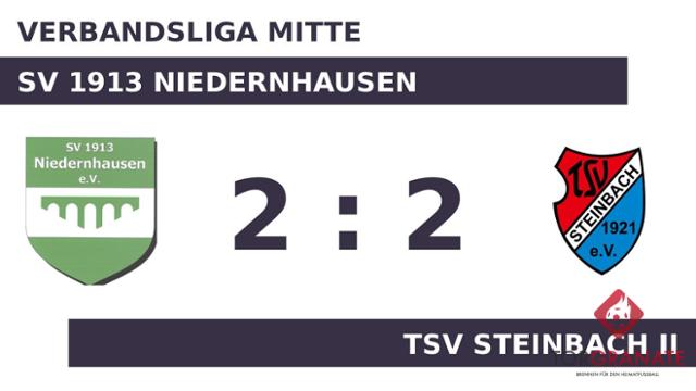 Auf die vermeintliche Siegerstraße brachte Levin Leandro Delli Liuni sein Team in der 27. Minute. Die Antwort ließ nicht lange auf sich warten. Wenige Augenblicke später besorgte Dominik Ortega Tapia den Ausgleich (33.). Eine Aussage darüber, wer am Ende die Nase vorn haben würde, war nach dem Abpfiff der ersten Halbzeit noch nicht zu treffen. Es ging mit einem Gleichstand in die Kabinen. Wenig später kamen Paul Meyer und Noel Wirtz per Doppelwechsel für Sandro Noriega und Delli Liuni auf Seiten der Reserve des TSV Steinbach ins Match (64.). In der 69. Minute erzielte Davide Frusteri das 2:1 für den SV Niedernhausen. Ertan Hajdaraj witterte seine Chance und schoss den Ball zum 2:2 für den TSV Steinbach II ein (79.). Beim Abpfiff durch den Referee Timo Hager (Ginsheim-Gustavsburg) stand es zwischen dem SV 1913 Niedernhausen und dem TSV Steinbach II pari, sodass sich beide mit jeweils einem Punkt begnügen mussten.