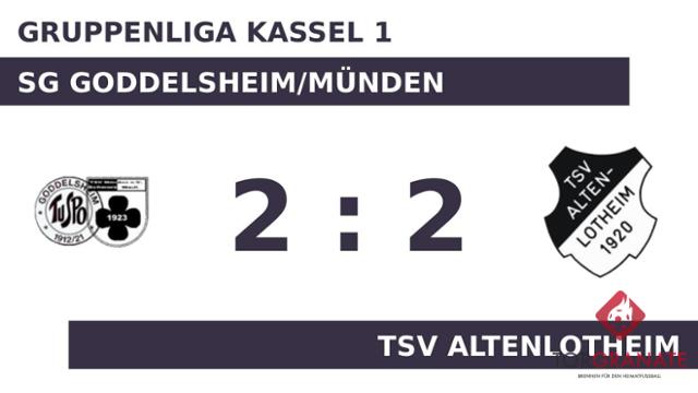 Goddelsheim/Münden geriet schon in der achten Minute in Rückstand, als Torben Garthe das schnelle 1:0 für den TSV Altenlotheim erzielte. Lars Dohle nutzte die Chance für die SG Goddelsheim/Münden und beförderte in der 19. Minute das Leder zum 1:1 ins Netz. Bis zur Halbzeitpause konnte keine der Mannschaften ihre Torbilanz mehr verbessern. Benedikt Schweitzer brachte den Ball zum 2:1 zugunsten von Goddelsheim/Münden über die Linie (84.). Beim TSV Altenlotheim kam Till Buckert für Yannik Leisner ins Spiel und sollte fortan für neue Impulse sorgen (86.). Der TSV Altenlotheim hatte sich schnell wieder gesammelt und erzielte in Person von Buckert den Ausgleich (89.). Letztlich gingen die SG Goddelsheim/Münden und der TSV Altenlotheim mit jeweils einem Punkt auseinander.