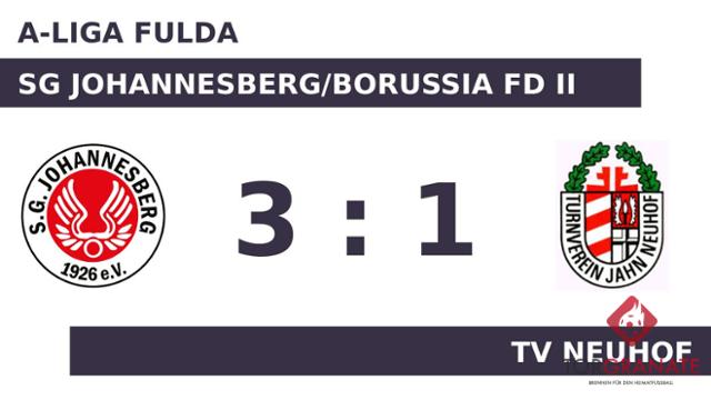 Abdullah Özsuvaci brachte den TV in der 38. Minute ins Hintertreffen. Kurz vor dem Pfiff zur Halbzeit machte Benjamin Danne das 2:0 zugunsten der SG Johannesberg/Borussia FD II (40.). Mit der Führung für den Gastgeber ging es in die Halbzeitpause. Florian Möller ließ sich in der 56. Minute nicht zweimal bitten und verwertete zum 1:2 für den TV Neuhof. Mit dem Tor zum 3:1 steuerte Danne bereits seinen zweiten Treffer an diesem Tag bei (72.). Am Ende behielt die Jo-berg/Borussia II gegen den TV Neuhof die Oberhand.