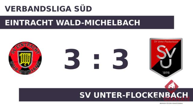 Für das erste Tor sorgte Nils Eckstein. In der 14. Minute traf der Spieler der Unter-Flockenbacher ins Schwarze. Owen Lobo versenkte die Kugel zum 2:0 für die Gäste (25.). Florian Butscher schoss für das Wald-Michelbach in der 26. Minute das erste Tor. Für das 3:1 von SV Unter-Flockenbach zeichnete Lotfi Graidia verantwortlich (35.). Bei der Eintracht Wald-Michelbach gab es ein neues Gesicht auf dem Platz: Yannick Marx wurde für Marius Möldner eingewechselt. Die Hintermannschaft der SV Eintracht ließ bis zur Pause kein weiteres Tor zu und es ging bei unverändertem Stand in die Kabinen. Marx schlug doppelt zu und glich damit für die Wald-Michelbacher aus (54./89.). In der 67. Minute stellte SV Unter-Flockenbach personell um: Per Doppelwechsel kamen Leon Gelzenlichter und Müslüm Arikan auf den Platz und ersetzten David Zyprian und Eckstein. Der Ligaprimus ließ nach dem Wiederanpfiff stark nach und so erkämpfte sich das Wald-Michelbach noch ein Unentschieden.