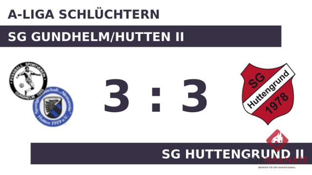 Kaum war das Spiel angepfiffen, lagen die Gäste bereits in Front. Edin Omerovic markierte in der fünften Minute die Führung. SG Huttengrund II musste den Treffer von Fabian Schlemmer zum 1:1 hinnehmen (29.). Fabian Noll brachte SG Huttengrund II nach 33 Minuten die 2:1-Führung. Zur Pause behielt SG Huttengrund II die Nase knapp vorn. Florian Thuemmes erhöhte den Vorsprung von SG Huttengrund II nach 58 Minuten auf 3:1. Peter Kohlhepp schlug doppelt zu und glich damit für die SG Gundhelm/Hutten II aus (66./80.). Am Ende stand es zwischen der SG und SG Huttengrund II pari.
