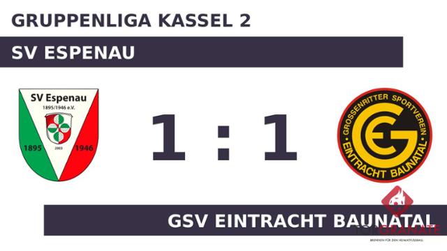Torlos ging es nach dem Halbzeitpfiff in die Kabinen. David Sandrock brachte den SV Espenau in der 67. Spielminute in Führung. Wenig später kamen Jonah Uhl und Nico Weller per Doppelwechsel für Benedikt Sandrock und Stefan Ansari auf Seiten der Heimmannschaft ins Match (72.). Für den späten Ausgleich war Hendrik Bestmann verantwortlich, der in der 90. Minute zur Stelle war. Schließlich gingen der SV Espenau und Eintracht Baunatal mit einer Punkteteilung auseinander.