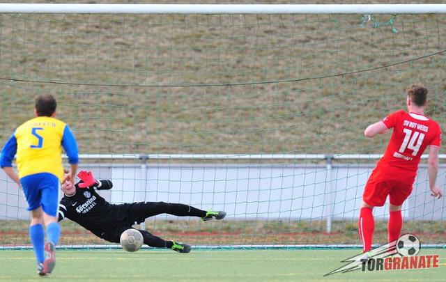 Sichere Beute. Den Elfmeter von Michael Straub (Nummer 14) hält Marcel Hein sogar fest. Foto: Siggi Larbig