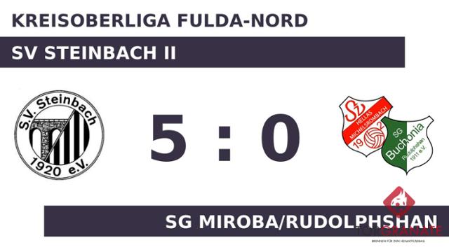 Ein Doppelpack brachte den SV Steinbach II in eine komfortable Position: Mirco Bott war gleich zweimal zur Stelle (9./20.). Für ruhige Verhältnisse sorgte Lukas Becker, als er das 3:0 für den SVS besorgte (23.). Der Halbzeitpfiff war noch nicht ertönt, als Bott seinen dritten Treffer nachlegte (43.). In der Pause wechselte die SG MiRoBa/Rudolphshan den nominellen Stürmer Dominik Hillenbrand für Felix Kircher ein. Mit einer deutlichen Führung des SV Steinbach II ging es in die Halbzeitpause. In der Halbzeit nahmen die Steinbacher gleich zwei Wechsel vor. Fortan standen Louis Quanz und Erik Ziegler für Kevin Koch und Petr Paliatka auf dem Platz. Eigentlich war das MiRoBa/Rudolphshan schon geschlagen, als Becker das Leder zum 0:5 über die Linie beförderte (47.). Markus Schel (Petersberg) pfiff schließlich das Spiel ab, in dem der SV Steinbach II bereits in Durchgang eins deutlich gezeigt hatte, dass es nach 90 Minuten nur einen Sieger geben würde.