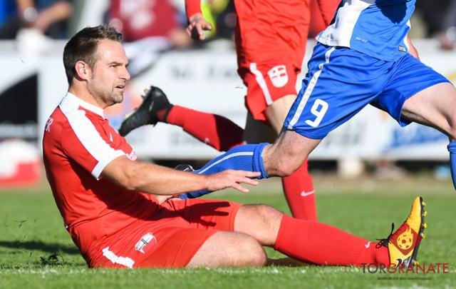 Daniel van Thiel tauscht das rote Trikot des Rasdorfer SC gegen das blaue Trikot des SC Soisdorf. Foto: Kevin Kremer
