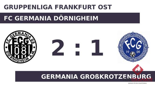 Für das erste Tor sorgte Mert Oezkan. In der 28. Minute traf der Spieler des Germania Dörnigheim ins Schwarze. Weitere Tore gelangen bis zur Halbzeit keinem der Teams und so ging es mit einem unveränderten Stand in die Kabine. Wenig später kamen k.A. k.A. und Alessandro Fröb per Doppelwechsel für David Angersbach und Tolunay Özelci auf Seiten des FC Germania 09 ins Match (55.). Jaouad El Kaddouri ließ sich in der 60. Minute nicht zweimal bitten und verwertete zum 1:1 für den FCG 09. Kaan Köksal brachte dem FC Germania Dörnigheim nach 61 Minuten die 2:1-Führung. In den 90 Minuten war das Heimteam im gegnerischen Strafraum erfolgreicher als die Germania Großkrotzenburg und fuhr somit einen 2:1-Sieg ein.