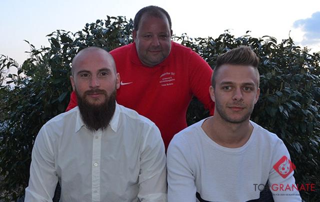 Marc Doebler (rechts) schließt sich dem Rasdorfer SC an, Trainer Marius Ebert (links) und Rainer Ziegler freut's. Foto: Johannes Götze