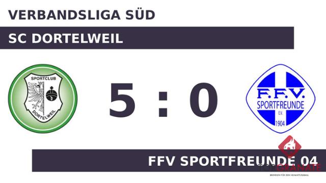 Der Sportclub ging durch Marvin Strenger in der zwölften Minute in Führung. Jürgen Bufi erhöhte den Vorsprung der Dortelweiler nach 34 Minuten auf 2:0. Mit der Führung für den SCD ging es in die Halbzeitpause. Die Heimmannschaft konnte mit dem ersten Durchgang sehr zufrieden sein. Trotzdem gab es Veränderungen beim SC Dortelweil. Oliver Steffen ersetzte Shahram Hashemi, der nun schon vorzeitig Feierabend machte. Für das 3:0 des SC Dortelweil sorgte Tugay Kuzpinari, der in Minute 70 zur Stelle war. Adrijan Aslimoski gelang ein Doppelpack (76./86.), mit dem er das Ergebnis auf 5:0 hochschraubte. Wenig später kamen Julian Mistetzky und Daniel Stumpp per Doppelwechsel für Kuzpinari und Maurice Reininger auf Seiten des SC Dortelweil ins Match (77.). Letztlich feierte der SC Dortelweil gegen die FFV Sportfreunde 04 nach einer überzeugenden Darbietung einen verdienten Heimsieg.