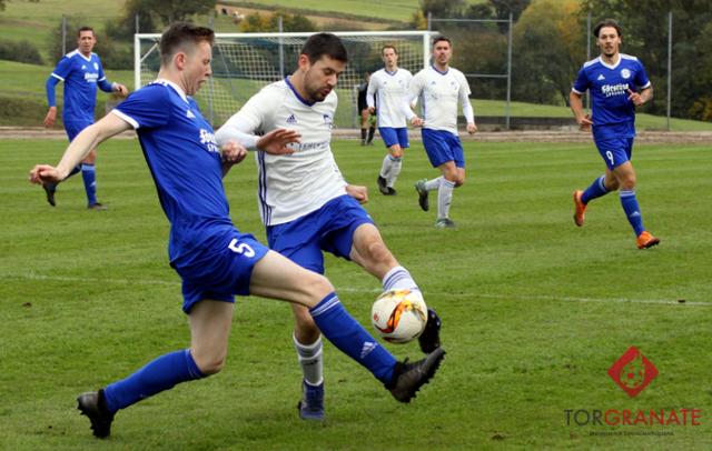 Das Derby wurde den hohen Erwartungen nicht gerecht. Kein Sieger, keine Tore zwischen Schlüchtern (blau) und Freiensteinau (weiß). Foto: Ottmar Schleich
