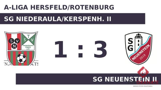 Im ersten Durchgang tasteten sich die beiden Mannschaften lediglich ab, Tore gab es nicht zu verzeichnen. Bei Niederaula/Kersp. II änderte sich die Aufstellung für die zweite Halbzeit. Kevin Moeller ersetzte Niklas Zettl. Elias Fischlein brach für die Heimmannschaft den Bann und markierte in der 60. Minute die Führung. Die SG Neuenstein II kam durch ein Eigentor der SG Niederaula/Kerspenh. II in der 76. Minute zum Ausgleich. James Rimer versenkte die Kugel zum 2:1 (78.). Abas Hasan stellte wenige Minuten vor dem Schlusspfiff den Stand von 3:1 für die SG Neuenstein II her (90.). Unter dem Strich verbuchte die SG Neuenstein II gegen Niederaula/Kersp. II einen 3:1-Sieg.