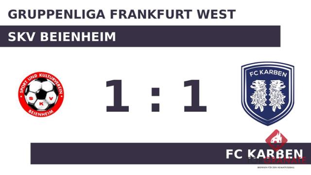 Der SKV Beienheim erwischte einen Blitzstart ins Spiel. Connor Nebel traf in der vierten Minute zur frühen Führung. Um den entscheidenden Deut besser war zur Pause der SKV, sodass es mit einer dünnen Führung in die Kabine ging. Mit einem Wechsel – Emanuel Essome kam für Paul Busch – startete der FC Karben in Durchgang zwei. Die Gäste drängten auf den Ausgleich. Für frischen Wind sollten Tom Meyer und Jonas Kocatürk sorgen, die per Doppelwechsel für Marius Troll und Felix Kaapke auf das Spielfeld kamen (66.). Für den späten Ausgleich war Bent Paul Stobbe verantwortlich, der in der 90. Minute zur Stelle war. Letzten Endes wurde im Aufeinandertreffen des SKV Beienheim mit dem FC Karben kein Sieger ermittelt.