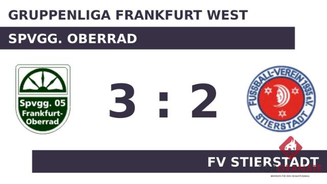 Für den Führungstreffer der Spielvereinigung 05 zeichnete k.A. k.A. verantwortlich (8.). Zum psychologisch ungünstigen Zeitpunkt vor der Halbzeit (44.) schoss Armin Gama einen weiteren Treffer für die Oberrader. Mit der Führung für den Gastgeber ging es in die Halbzeitpause. Beim FV Stierstadt kam zu Beginn der zweiten Hälfte Florian Schnell-Kretschmer für Finn Prywer in die Partie. In der Halbzeit nahm die Spvgg. Oberrad gleich zwei Wechsel vor. Fortan standen Yannick Seith und Luca Longhitano für Kenneth Malm und Yousef Mohseni Habibabadi auf dem Platz. Masse Bell Bell verwandelte in der 48. Minute einen Elfmeter und baute den Vorsprung der Spvgg. Oberrad auf 3:0 aus. Gabriel Fustero beförderte das Leder zum 1:3 des FV Stierstadt über die Linie (75.). Tim Pelka schoss für den FVS in der 79. Minute das zweite Tor. Nachdem die Stierstädter zunächst völlig von der Rolle gewesen waren, zogen sie sich am Ende zumindest noch achtbar aus der Affäre. Zu einem Punktgewinn reichte es jedoch nicht mehr.