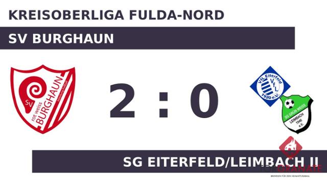 Vedat Sadiki brachte die SG Eiterfeld/Leimbach II in der 13. Minute ins Hintertreffen. Philipp Dixon beförderte das Leder zum 2:0 des SV Burghaun über die Linie (23.). Letztendlich hatten die Rot-Weißen Spielentscheidendes bereits in der ersten Hälfte vollbracht, als sie die Führung mit in die Kabine nahmen – ein Vorsprung, der auch noch nach Ablauf der vollen Spielzeit Bestand hatte.