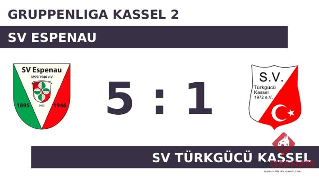 Für Jan Schleiden war der Einsatz nach 15 Minuten vorbei. Für ihn wurde David Sandrock eingewechselt. Bevor es in die Pause ging, hatte Marvin Breitlauch noch das 1:0 des SV Espenau parat (40.). Kurz vor dem Seitenwechsel legte Florian Windus das 2:0 nach (42.). Mit der Führung für den SV Espenau ging es in die Kabine. Mit dem 3:0 durch Windus schien die Partie bereits in der 47. Minute mit dem SV Espenau einen sicheren Sieger zu haben. Kristijan Jurecivic verkürzte für Türkgücü Kassel später in der 55. Minute auf 1:3. Mit dem 4:1 von Sandrock für den SV Espenau war das Spiel eigentlich schon entschieden (60.). Wenig später kamen Memduh Eryilmaz und Dlzaar Kald-Zeki per Doppelwechsel für Mohamed Ghafari und Sezer Özen auf Seiten des SV Türkgücü Kassel ins Match (61.). Eigentlich war der Gast schon geschlagen, als Jonah Uhl das Leder zum 1:5 über die Linie beförderte (66.). Am Ende kassierte Türkgücü Kassel im Kellerduell mit dem SV Espenau eine klare Niederlage.