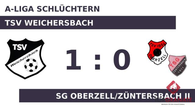 Das 1:0 der TSV stellte Kevin Schneider sicher (25.). Die Weichersbacher hatten zur Pause eine knappe Führung auf dem Zettel stehen. Die SG OZ II kam mit einer geänderten Formation aus der Kabine zurück: Julian Dorn war für Dennis Kretz zur Stelle. Schlussendlich pfiff Schiedsrichter Oliver Romanow (Petersberg) das Spiel ab, ohne dass Tore im zweiten Durchgang zu bejubeln waren. Die TSV Weichersbach brachte am Ende einen knappen Dreier unter Dach und Fach.