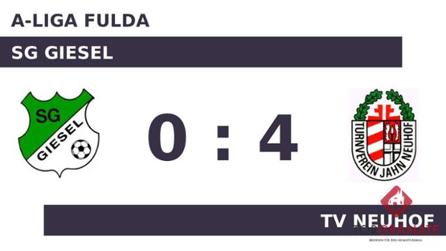 Der TV erwischte einen Blitzstart ins Spiel. Niklas Riedl traf in der fünften Minute zur frühen Führung. Florian Beier schoss die Kugel zum 2:0 für den Jahn über die Linie (18.). Mit dem 3:0 durch Riedl schien die Partie bereits in der 24. Minute mit den Neuhofer einen sicheren Sieger zu haben. Das letzte Tor der turbulenten Startphase markierte Alexander Urner in der 30. Minute. Bis zum Schlusspfiff durch den Unparteiischen Niklas Klitsch (Künzell) betrieb SG Giesel nach einem desolaten ersten Spielabschnitt in Halbzeit zwei Schadensbegrenzung und verhinderte eine noch höhere Pleite. Am Ende hieß es 4:0 zugunsten des TV Neuhof.