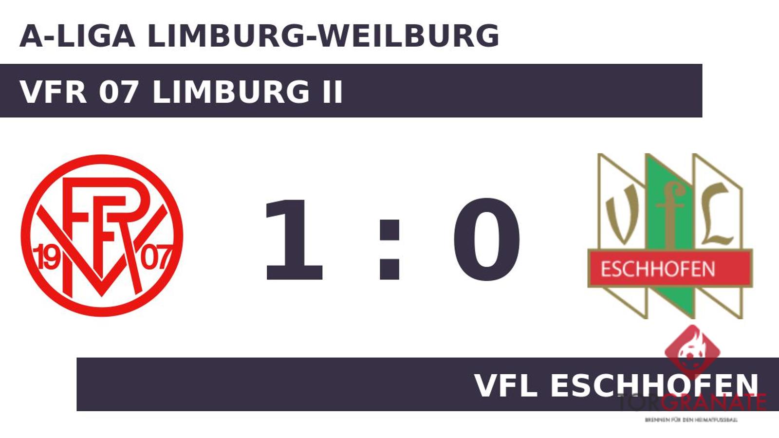 Torlos ging es nach dem Halbzeitpfiff in die Kabinen. In Durchgang zwei lief Christopher Mabiala anstelle von Yazn Khalil für den VFR Limburg II auf. Alban Bungi brach für den Gastgeber den Bann und markierte in der 83. Minute die Führung. Am Schluss gewann der VFR 07 Limburg II gegen den VfL Eschhofen.