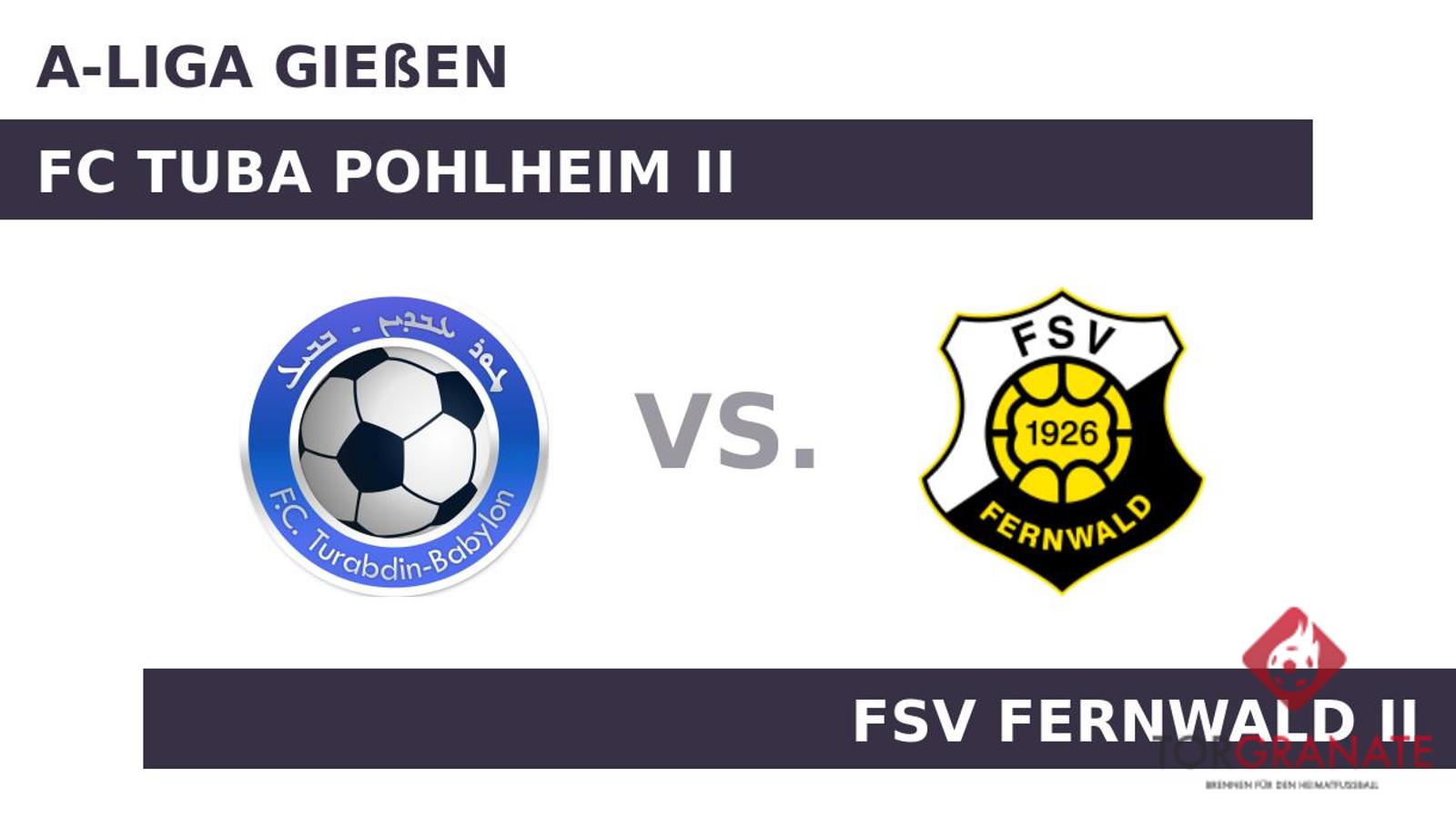 Aufpassen sollte der FC TuBa Pohlheim II auf die Offensivabteilung des FSV Fernwald II, die durchschnittlich mehr als dreimal pro Spiel zuschlug. Hier spielen zwei enge Konkurrenten gegeneinander. Der FSV Fernwald II nimmt mit sieben Punkten den sechsten Platz ein. Der FC TuBa Pohlheim II liegt aber mit nur einem Punkt weniger auf Platz sieben knapp dahinter und kann mit einem Sieg am FSV Fernwald II vorbeiziehen. Beide Teams fuhren in dieser Saison bisher zwei Siege ein.