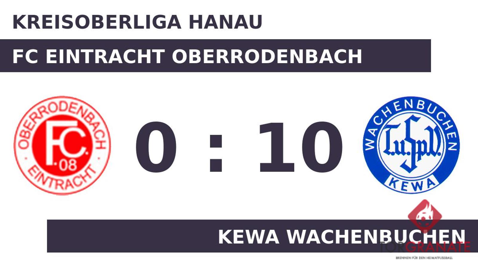 Patrick Nowak versenkte die Kugel zum 2:0 für die KeWa Wachenbuchen (18.). Niklas Fehst stellte die Weichen für den Gast auf Sieg, als er in Minute 18 mit dem 1:0 zur Stelle war. Für ruhige Verhältnisse sorgte Marco Kolev, als er das 3:0 für die KeWa Wachenbuchen besorgte (31.). Während einige mit ihren Gedanken bereits in der Pause waren, nutzte Sabahudin Elko Bajramovic Schmidt seine Chance und schoss das 4:0 (43.) für die KeWa Wachenbuchen. Der dominante Vortrag der KeWa Wachenbuchen im ersten Spielabschnitt zeigte sich an der deutlichen Halbzeitführung. Dass es ein ungleiches Duell war, demonstrierten Nowak (51.), Tim Brieder (54.) und Elias Zafar (55.), die weitere Treffer für die KeWa Wachenbuchen folgen ließen. Mit den Treffern zum 10:0 (73./76./82.) sicherte Tim Eibelshaeuser der KeWa Wachenbuchen nicht nur den Sieg, sondern machte auch seinen Hattrick perfekt. Am Ende ließ die KeWa Wachenbuchen kein gutes Haar am Eintr. Oberrodenbach und gewann außerordentlich hoch.