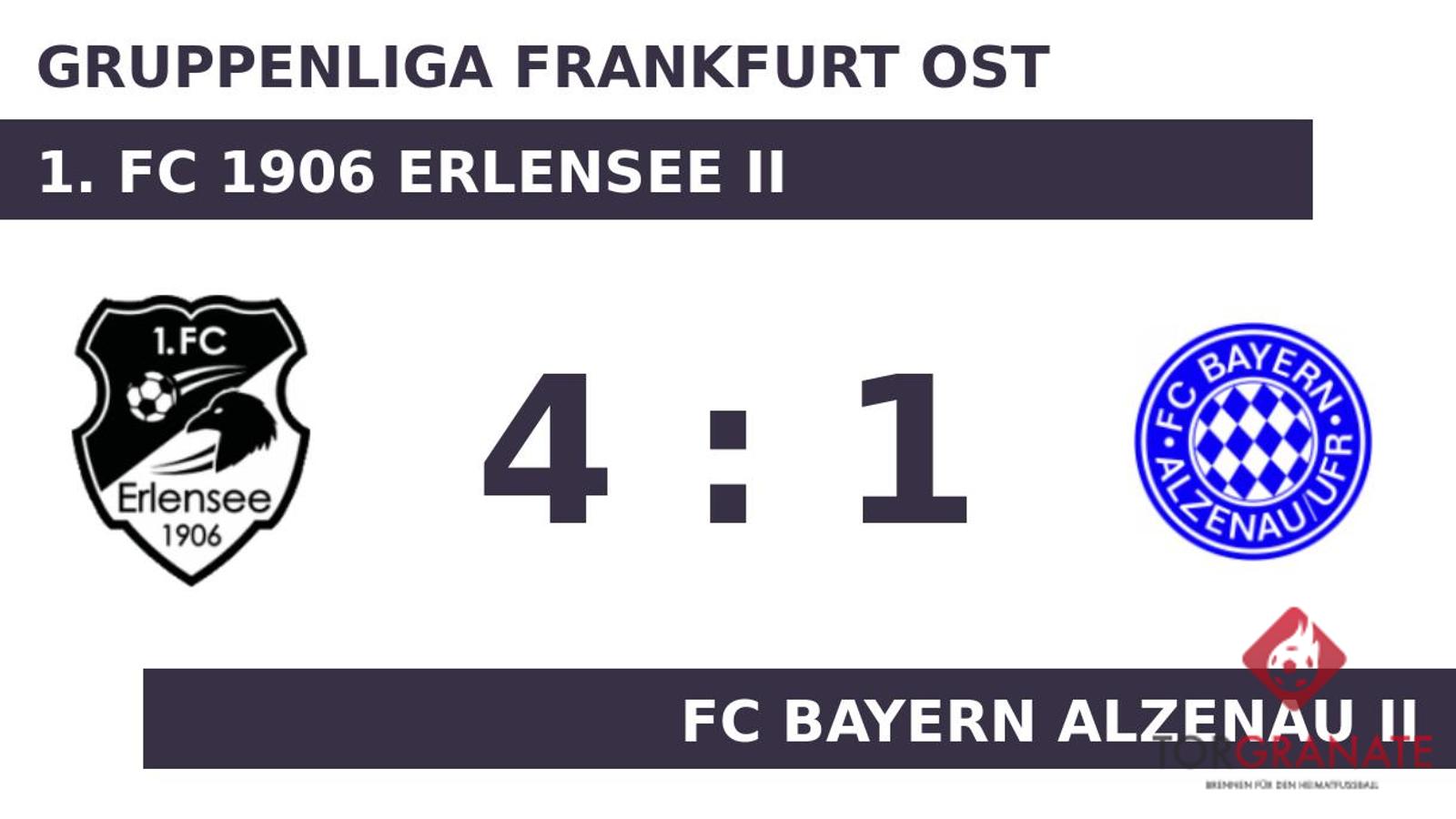 Maurice Koloczek brachte den 1. FC 1906 Erlensee II in der 13. Minute in Front. Ein frühes Ende hatte das Spiel für Rene Becker vom Gastgeber, der in der 13. Minute vom Platz musste und von Jeremia Nianga ersetzt wurde. Mit einem Wechsel – Loick Gandonou kam für Joel Andres – startete der FC Bayern Alzenau II in Durchgang zwei. Der Schiedsrichter schickte schließlich beide Mannschaften ohne weitere Änderung am Spielstand in die Kabinen. Anstelle von Vincent Glavan war nach Wiederbeginn k. A. für den FC Bayern Alzenau II im Spiel. Cem Bolgi sicherte den Gästen nach 50 Minuten den Ausgleich durch einen Elfmeter. Die nächsten beiden Treffer waren einem Mann vorbehalten: Philipp Müller schnürte einen Doppelpack (61./78.), sodass der 1. FC Erlensee II fortan mit 3:1 führte. Koloczek brachte den 1. FC 1906 Erlensee II in ruhiges Fahrwasser, indem er das 4:1 erzielte (80.). Mit dem Schlusspfiff durch Schiedsrichter Paul-Ioan Barbu (Frankfurt am Main) gewann der 1. FC Erlensee II gegen den FC Bayern Alzenau II.