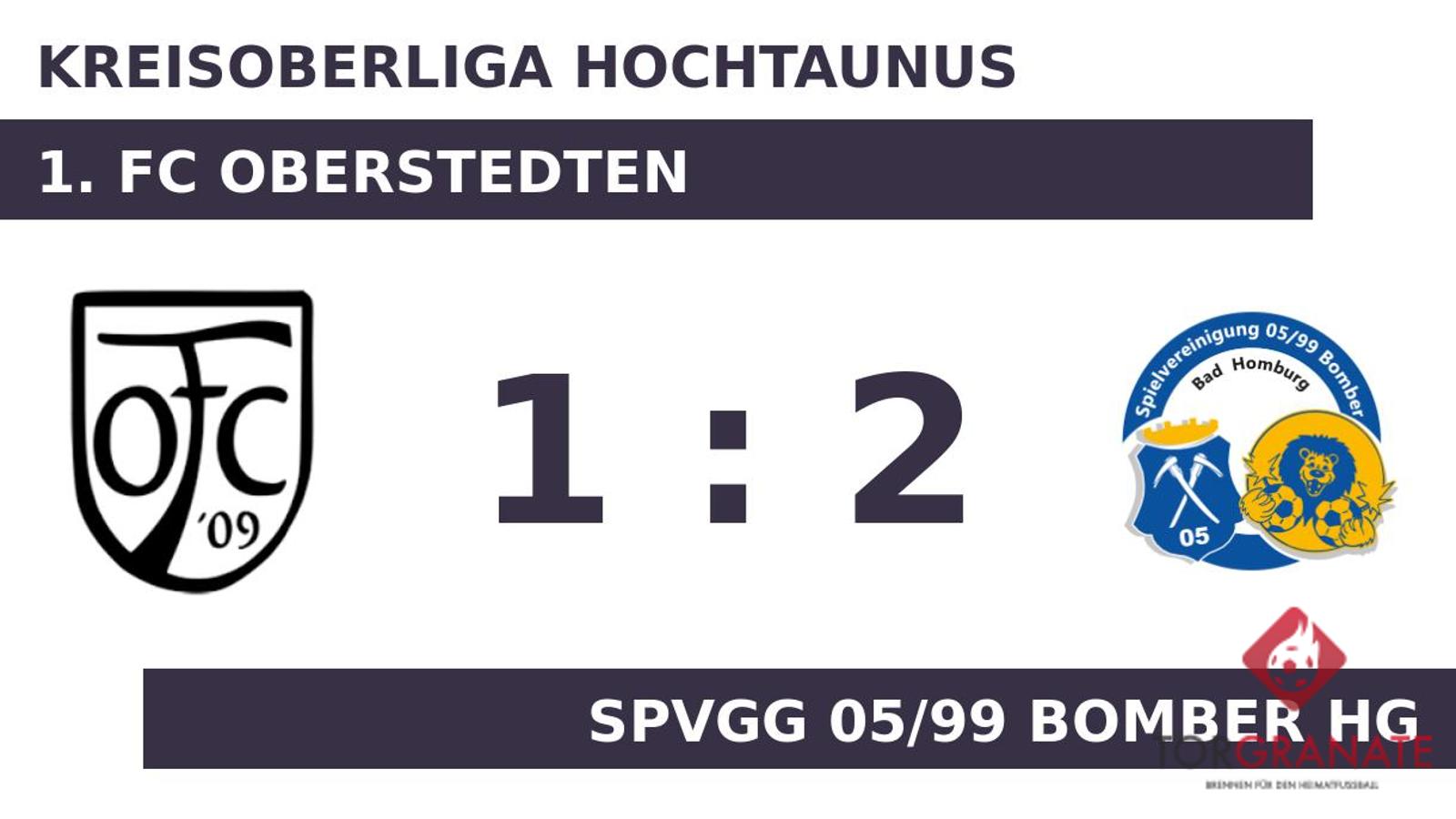 Der 1. FC Oberstedten geriet schon in der sechsten Minute in Rückstand, als Kevin Haub das schnelle 1:0 für die SpVgg 05/99 Bomber erzielte. Wenig später verwandelte Nouri Jeghan einen Elfmeter zum 1:1 zugunsten des 1. FC Oberstedten (22.). Kurz vor der Pause traf Haben Gazae Embaye für die SpVgg 05/99 Bomber HG (41.). Zur Pause war der Gast im Fahrwasser und verbuchte eine knappe Führung. Zum Seitenwechsel ersetzte Moritz Nickel vom 1. FC Oberstedten seinen Teamkameraden Birhat Erdogan. Obwohl der SpVgg 05/99 Bomber nach erfolgreicher erster Hälfte keine weiteren Tore gelangen, schaffte es der 1. FC Oberstedten zugleich nicht, die Partie zu drehen. Sie endete mit dem Halbzeitstand von 2:1.