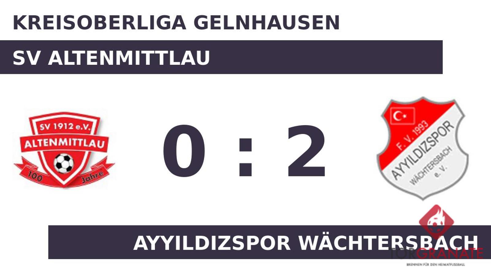 Nach nur 21 Minuten verließ Stefan Dietz vom SV Altenmittlau das Feld, Niklas Betz kam in die Partie. Torlos ging es zur Halbzeitpause in die Kabinen. In der Pause wechselte das Ayy. Wächtersbach den nominellen Stürmer Halil Kutlu für Hilmi Karakaya ein. Yakup Yigit brach für die Türken den Bann und markierte in der 82. Minute die Führung. Kurz vor Ultimo war noch Samet Degermenci zur Stelle und zeichnete für das zweite Tor des Gasts verantwortlich (85.). Die 0:2-Heimniederlage des SV Altenmittlau war Realität, als Schiedsrichter Ahmet Karakus (Obertshausen) die Partie letztendlich abpfiff.