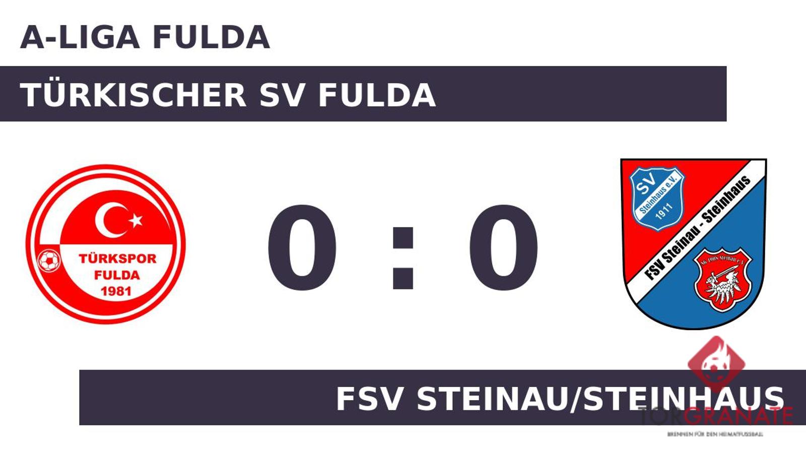 Ein frühes Ende hatte das Spiel für Julian Schmitt von der FSV, der in der zehnten Minute vom Platz musste und von Liban Mohamed ersetzt wurde. Nach nur 28 Minuten verließ Dominic Günther von der Spielgemeinschaft das Feld, Tobias Möller kam in die Partie. Bis Schiedsrichter Lars-Hendrik Köpsel (Kalbach) den ersten Durchlauf beendete, änderte sich am Zählerstand nichts mehr. Nachdem auch die zweite Hälfte ohne Tore verstrichen war, trennten sich der Türkischer SV Fulda und die FSV Steinau/Steinhaus schließlich mit einem torlosen Unentschieden.