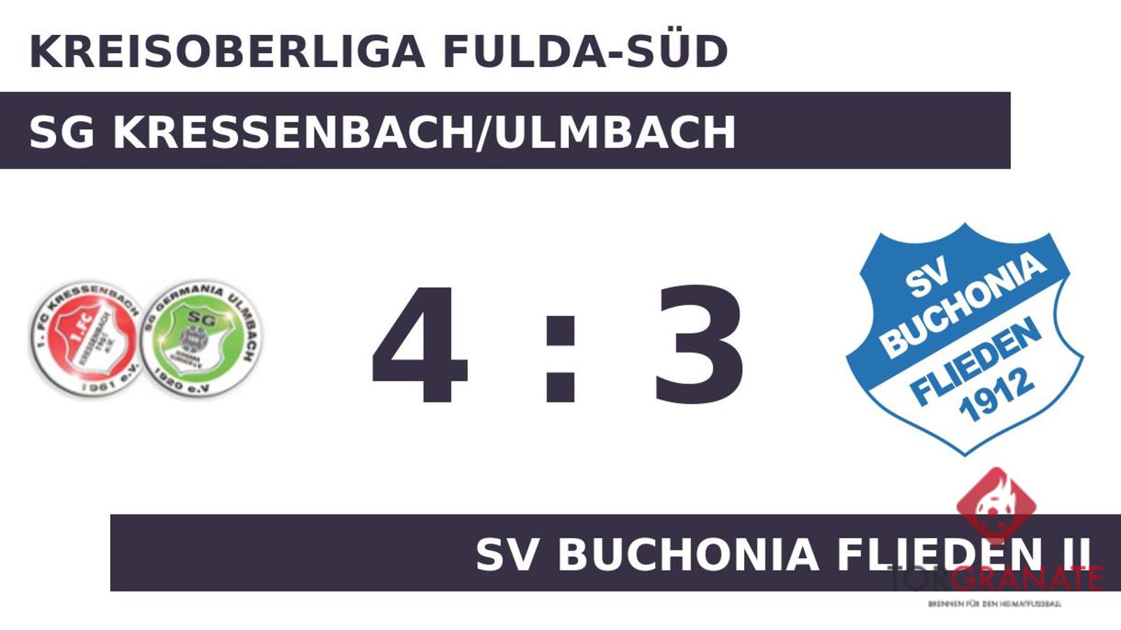 Justin Wolf brachte den Ball zum 1:0 zugunsten der SG KU über die Linie (20.). Jan Rink versenkte die Kugel zum 2:0 für die SG (39.). Mit der Führung für die Spielgemeinschaft ging es in die Kabine. Rink brachte KU in ruhiges Fahrwasser, indem er das 3:0 erzielte (52.). Für das 4:0 des Heimteams sorgte Wolf, der in Minute 63 zur Stelle war. Eine starke Leistung zeigte Justin Odenwald, der sich mit einem Doppelpack für den SV Flieden II beim Trainer empfahl (75./78.). Noah Koch verkürzte für die Buchonia später in der 90. Minute auf 3:4. Nachdem zunächst überhaupt nichts zusammengelaufen und die Buchonen deutlich ins Hintertreffen geraten war, bäumte sich der Gast noch einmal auf und betrieb immerhin noch Ergebniskosmetik.