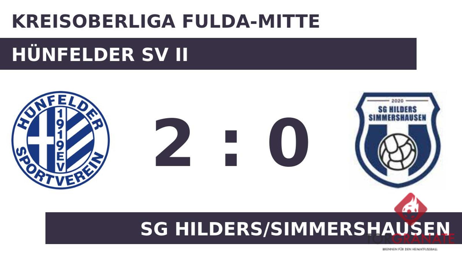 Die SG Hi/Si geriet schon in der achten Minute in Rückstand, als Laurin Waider das schnelle 1:0 für den Hünfelder SV II erzielte. Der Hünfelder SV II machte weiter Druck und erhöhte den Spielstand im Eilschritt durch einen Treffer von Ivan Lovakovic (9.). In der 20. Minute stellte die SG Hilders/Simmershausen personell um: Per Doppelwechsel kamen Leon Beck und Stefan Etzel auf den Platz und ersetzten Julian Feuerstein und Leonard Weber. Mit der Führung für den Hünfelder SV II ging es in die Kabine. Nominell gleich positioniert ersetzte Julian Helm Sven Sorian im zweiten Durchgang bei der HSV-Reserve (46.). Letzten Endes schlug der Hünfelder SV II im 23. Saisonspiel die SG Hi/Si souverän mit 2:0 vor heimischer Kulisse.