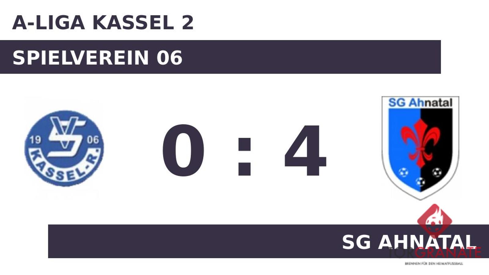 Durch den nie gefährdeten Sieg gegen den Spielverein 06 festigte die SG Ahnatal den zweiten Tabellenplatz. Mit nur 25 Gegentoren hat die SG Ahnatal die beste Defensive der A-Liga Kassel 2. Nur einmal gab sich die SG Ahnatal bisher geschlagen. Die SG Ahnatal kann zufrieden auf die Endphase schauen, liegt die letzte Niederlage doch schon vier Spiele zurück.