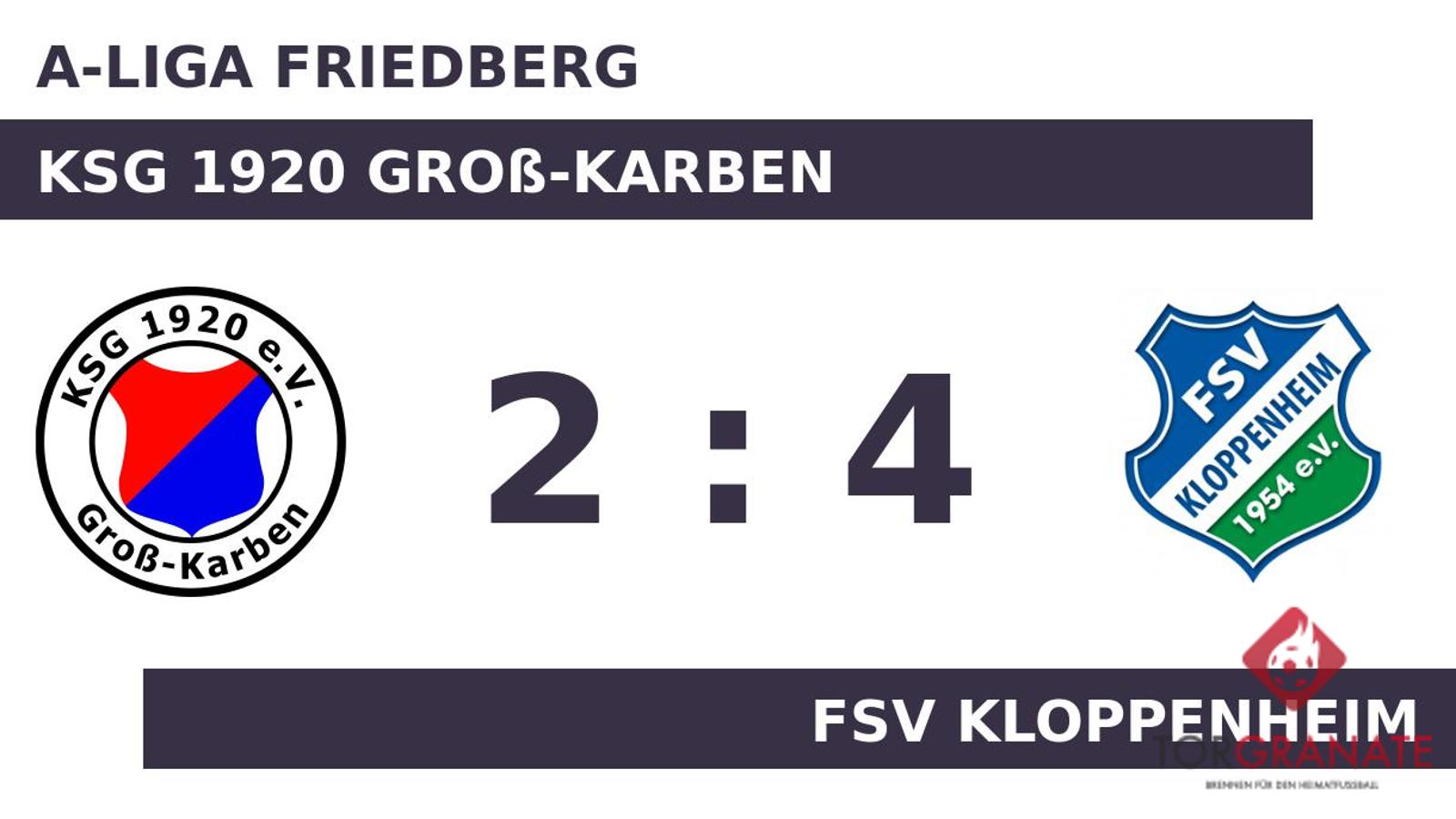 Oezguer Genc schoss in der 38. Minute vom Elfmeterpunkt das erste Tor des Spiels für die KSG 1920 Groß-Karben. Die KSG 1920 Groß-Karben hatte zur Pause eine knappe Führung auf dem Zettel stehen. Hendrik Huwe beförderte das Leder zum 1:1 des FSV Kloppenheim in die Maschen (52.). Per Elfmeter erhöhte Genc in der 71. Minute seine Torausbeute an diesem Tag auf zwei Treffer – 2:1 für die KSG 1920 Groß-Karben. Für die KSG 1920 Groß-Karben nahm das Match in der Schlussphase die bittere Wende. Gianluca Campagna drehte den Spielstand mit einem Doppelpack (79./86.) und sicherte dem FSV Kloppenheim einen Last-Minute-Sieg. Ehe der Abpfiff ertönte, war es Philipp Simon, der das 4:2 aus Sicht des FSV Kloppenheim perfekt machte (90.). Schließlich strich der FSV Kloppenheim die Optimalausbeute gegen die KSG 1920 Groß-Karben ein.